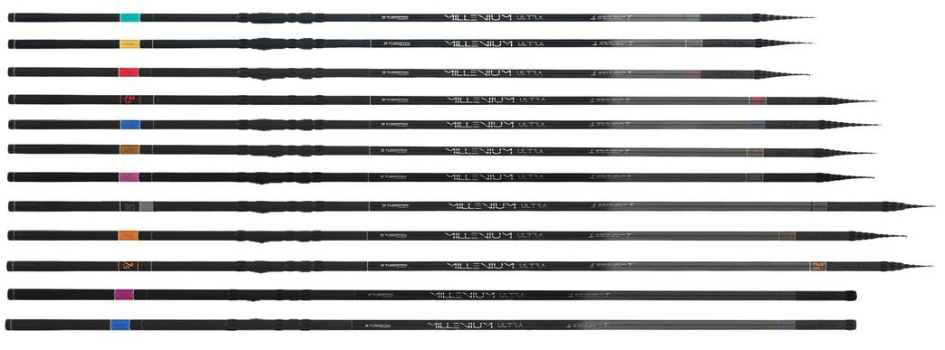 La serie da trota lago Millenium Ultra include dodici modelli differenti per soddisfare tutte le necessità dell’agonista nell’affrontare qualsiasi campo di gara. Sono tutte costruite con materiali ad alto modulo elastico con doppio rinforzo radiale, molto sottili, leggere e accuratamente calibrate sui casting indicati per ogni modello. Sono disponibili sia nella versione montata; i componenti sono di altissima qualità, con anelli Fuji e portamulinello San Fu.