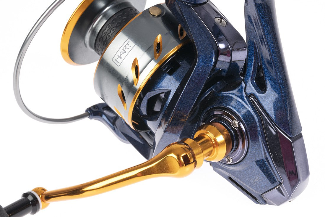 Manovella in alluminio lavorato. Pomello ergonomico in EVA da combattimento. Archetto extra spesso con guidafilo sovradimensionato integrato.